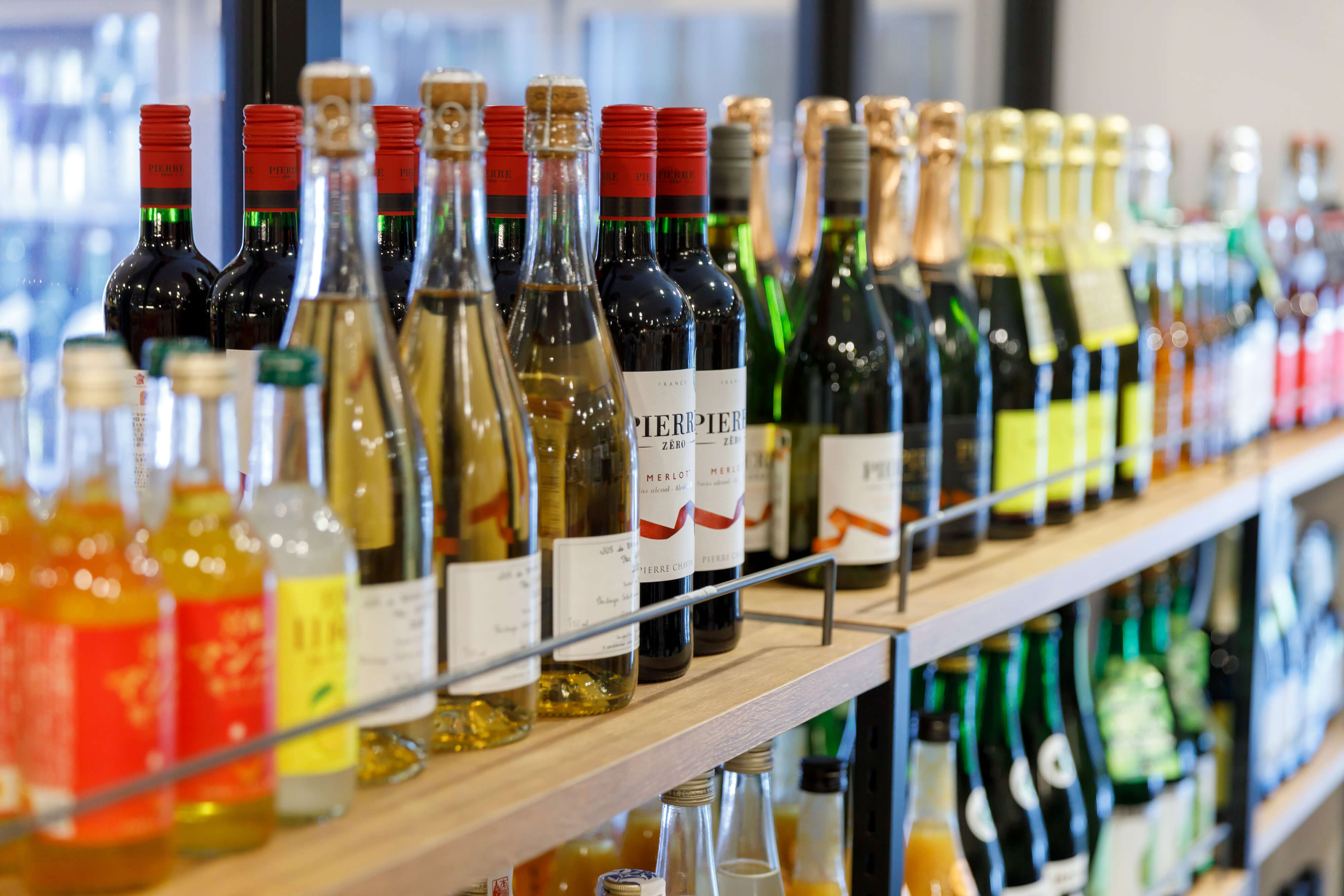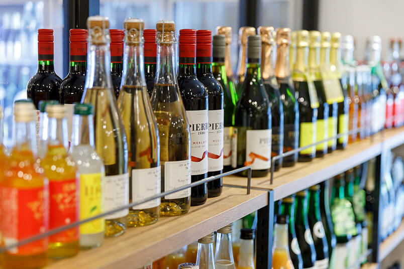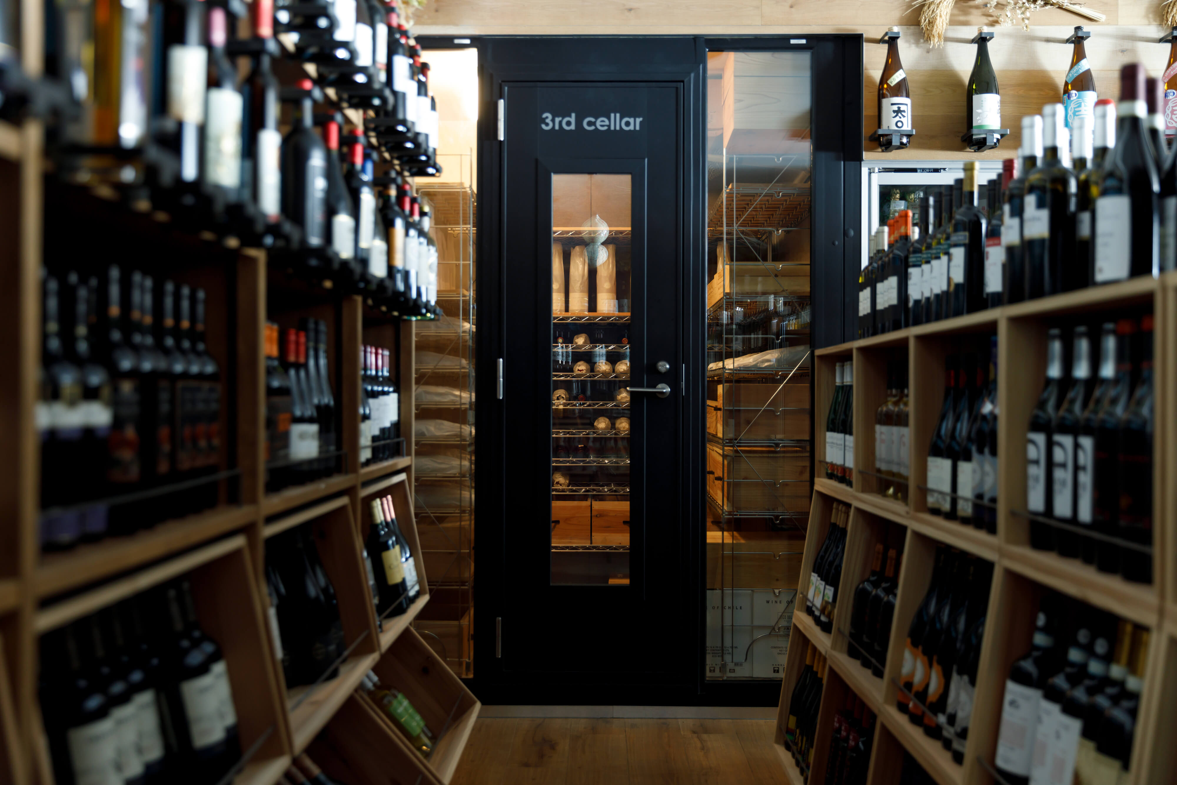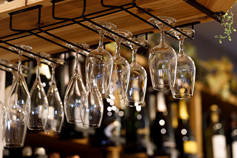 1階店内のドリンクカウンターメニュー(生ビールやグラスワイン、グラス日本酒など)はもちろん、店内で購入したボトルのワインや日本酒もお飲みいただけます。