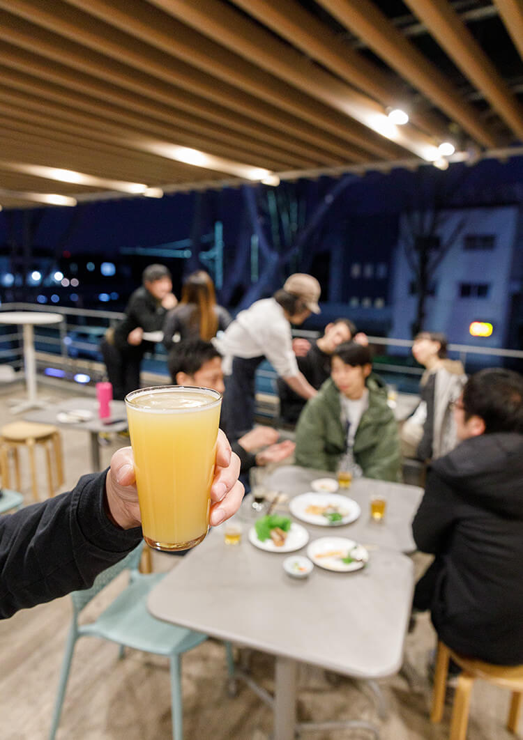 1階の角打ちカウンターと2階テラスで各種イベントを開催しております。