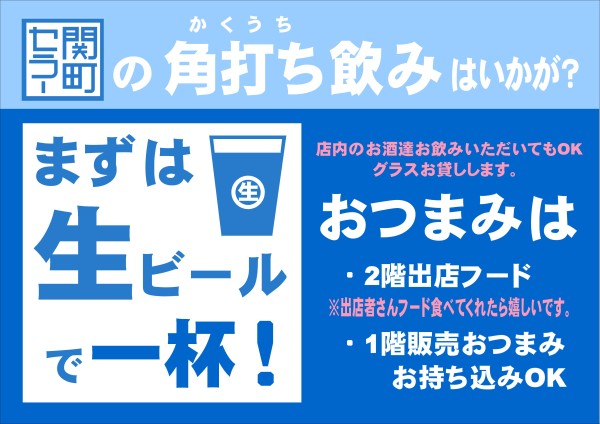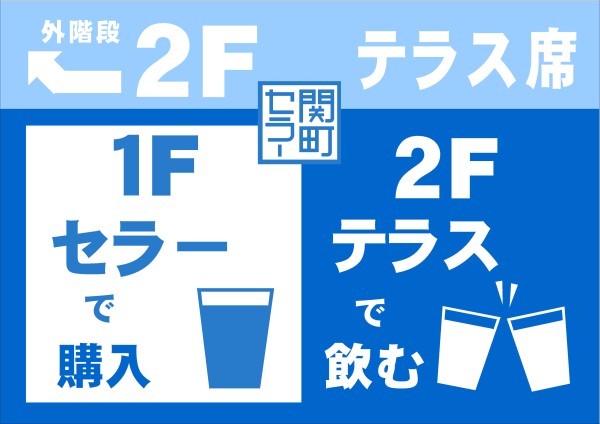 2階テラス席は、当店で購入した『お酒』や『おつまみ』をその場で楽しむことが出来るスペースです。